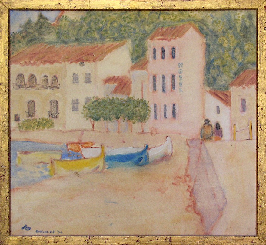 After leaving Mexico in 1975, the Longs visited Anne’s brother Fred and his family in Libya, where Fred was working for an oil company. From there they made a leisurely journey northward, spending some time in this lovely seaside town in the south of France. These paintings were made in 1976 from drawings of that trip. Both of the Collioure paintings were gifts from Bob Long to his son-in-law Ed. They hang in Ed’s bedroom here at Cactus Hill.