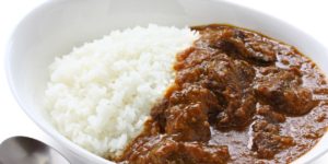 Combine flour, salt, pepper; roll meat in flour mixture. In 2 tablespoons oil in skillet or Dutch oven, brown meat well on all sides. Add the rest of the oil, onions, and garlic. Saute until light brown. Sprinkles with curry powder; add bouillon cubes and water.