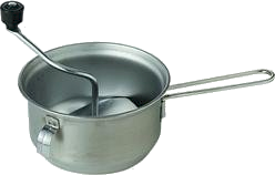 You’ll need some sort of appliance to process the cooked cranberries into a strained puree. A Foley food mill (right) is the original manual method. I have a KitchenAid mixer with a fruit and vegetable strainer attachment. Straining is critical because it removes cranberry and apple skins and seeds.