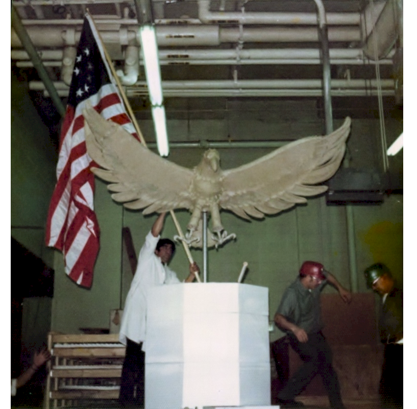 How else would you top off America’s birthday cake than with an American eagle? Here the team works on the mount for the eagle.